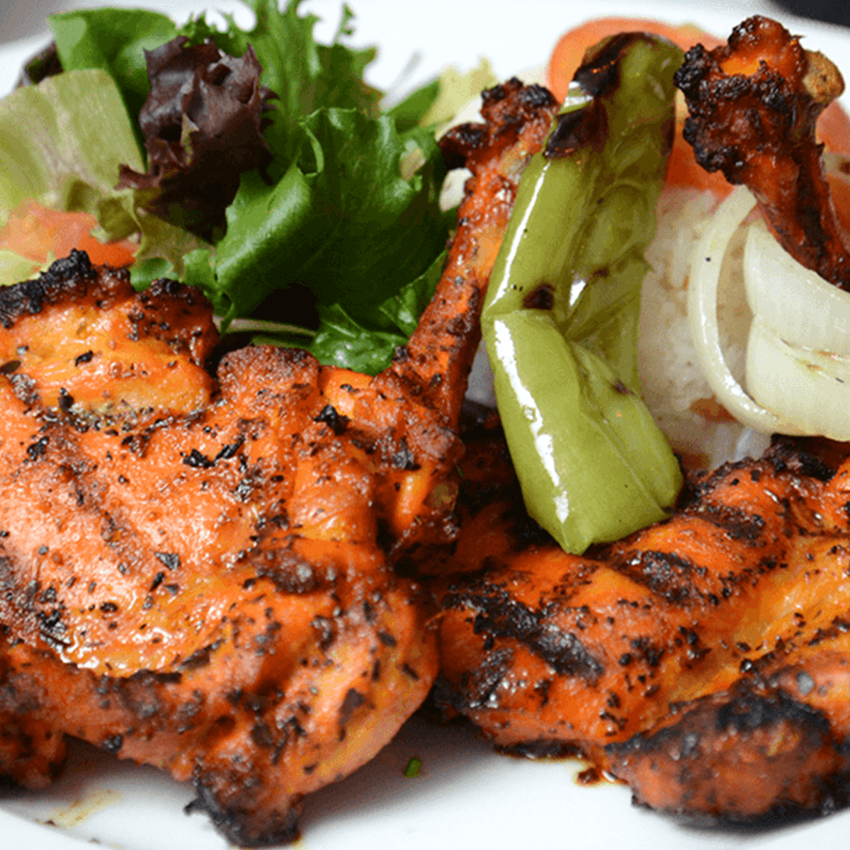 Chicken thighs, marinated with barbecue sauce, grilled to perfection and paired with Turkish rice.